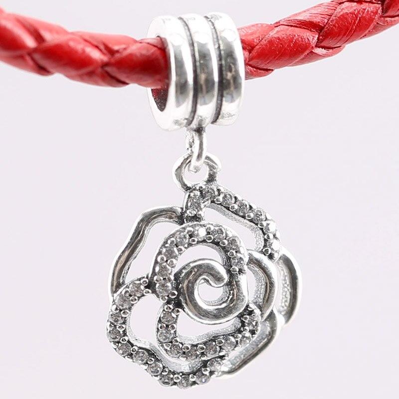 Original Openwork Rose Flower With Crystal Pendant Bead Fit 925 Sterling Silver Bead Charm Bracelet Diy Jewelry
